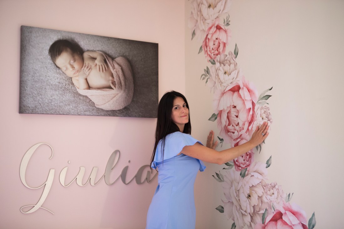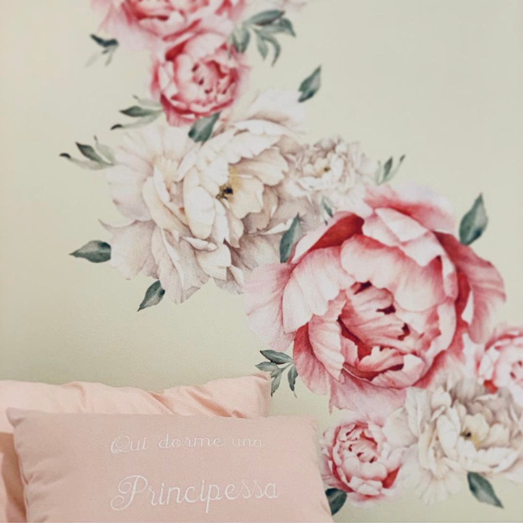 Per la cameretta di Giulia abbiamo scelto peonie autoadesive, creando una vera e propria cascata di fiori.