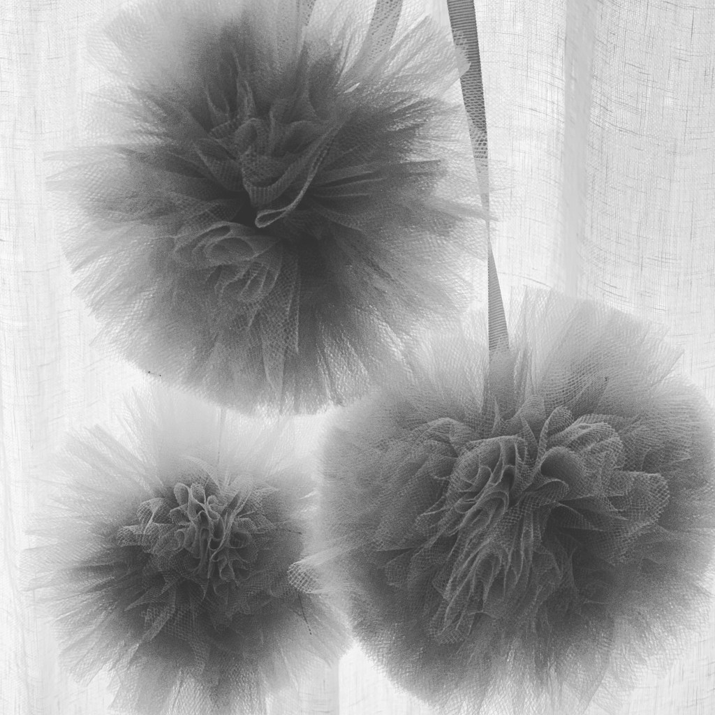 Per personalizzare la stanza, sono state realizzate delle iniziali dipinte a mano e pom pom in morbido tulle.
