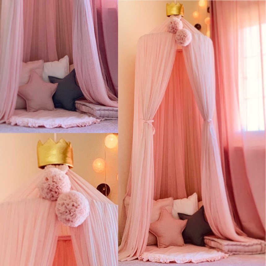 Bastano una canopy, cuscini di varie forme e un morbido tappeto per creare un angolo tutto per i nostri bambini in cui poter leggere un libro o semplicemente rilassarsi.